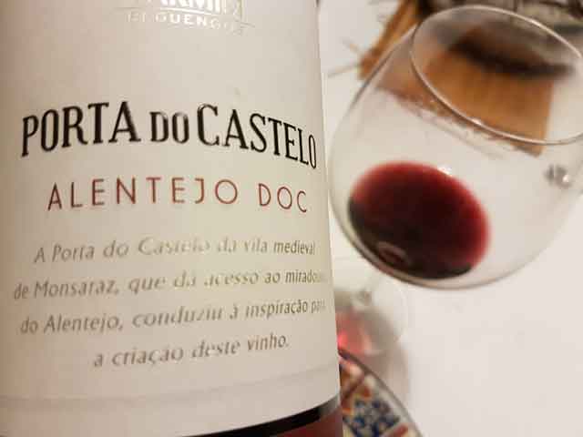 Porta do Castelo, Alentejo tinto 2014 Reserva, 14,5% de álcool, Aragonez, Trincadeira, Alicante Bouschet, com estágio parcial em carvalho francês.